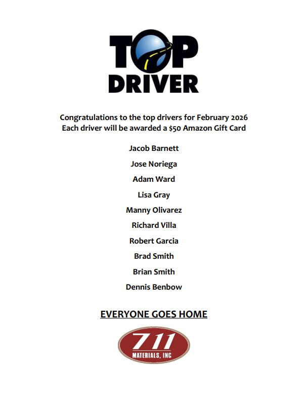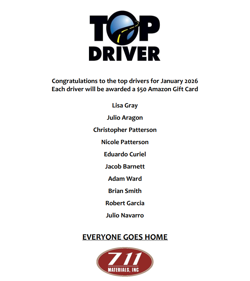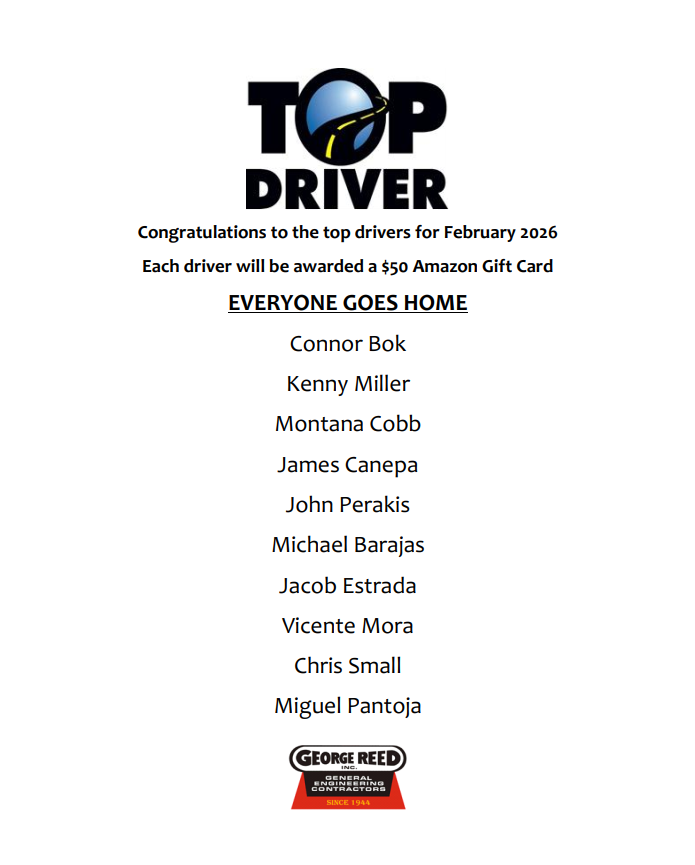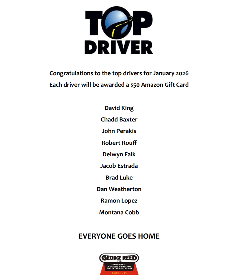 Eligibility: Hourly Drivers, Salary Construction Field Drivers and Salary Plant Operation Drivers that drive 1,000 miles or more within the calendar month.