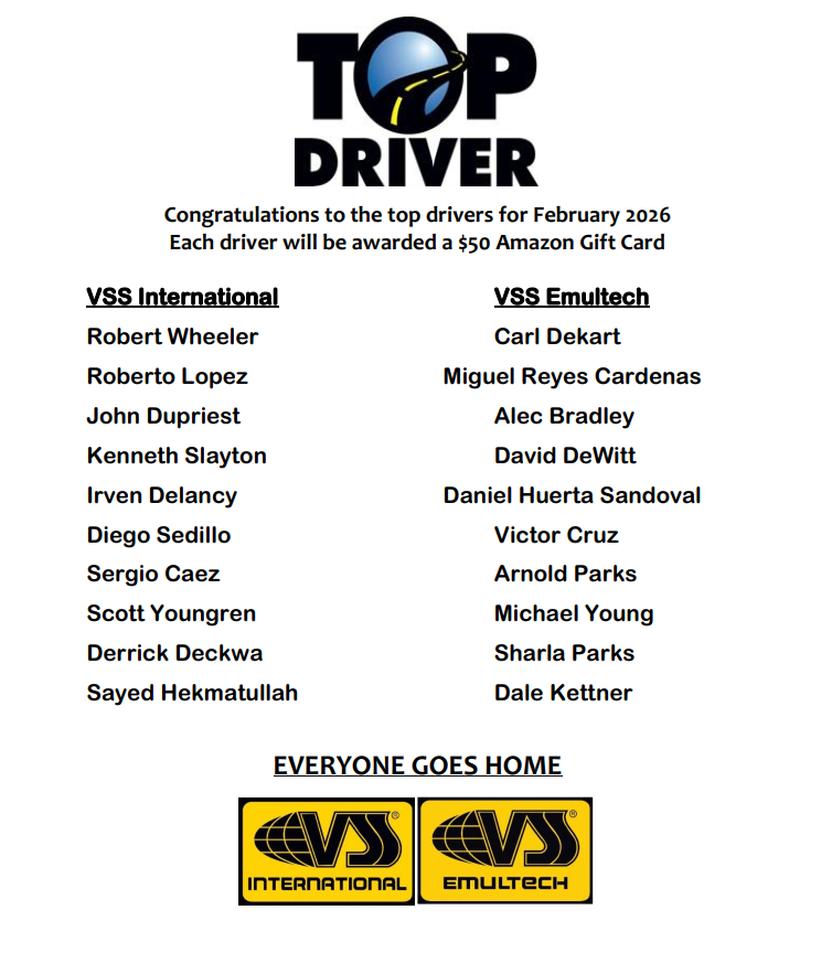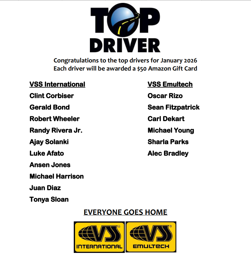 Shout-Out in the monthly Build Newsletters: Monthly top 10 drivers, yearly grand prize driver and top driver of the year for each company will get a Shout-Out in the monthly BUILD Newsletter and this page will list all winner by company and month.